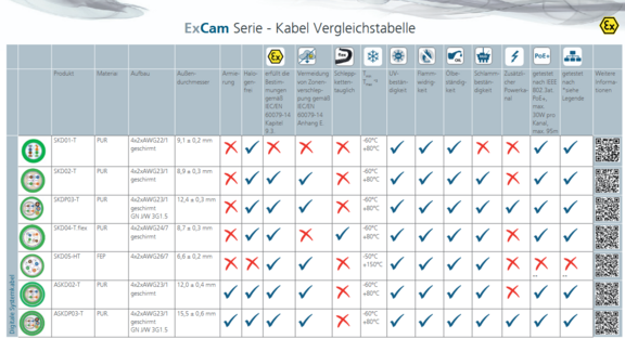 Eine Übersicht über unsere Kabel und deren Eigenschaften finden Sie unter Anderem in der folgenden Tabelle