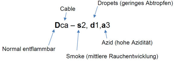 Das „ca“ steht übrigens für cable. Bis zur Brandklasse Dca reicht ein einmaliger Test des Kabels aus. Möchte man eine höhere Brandklasse bescheinigen (Cca, Bca) muss die Leitung regelmäßig Tests (etwa 1x jährlich) unterzogen werden.