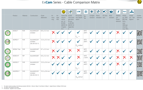 An overview of our cables and their properties can be found in the following table, among other places.